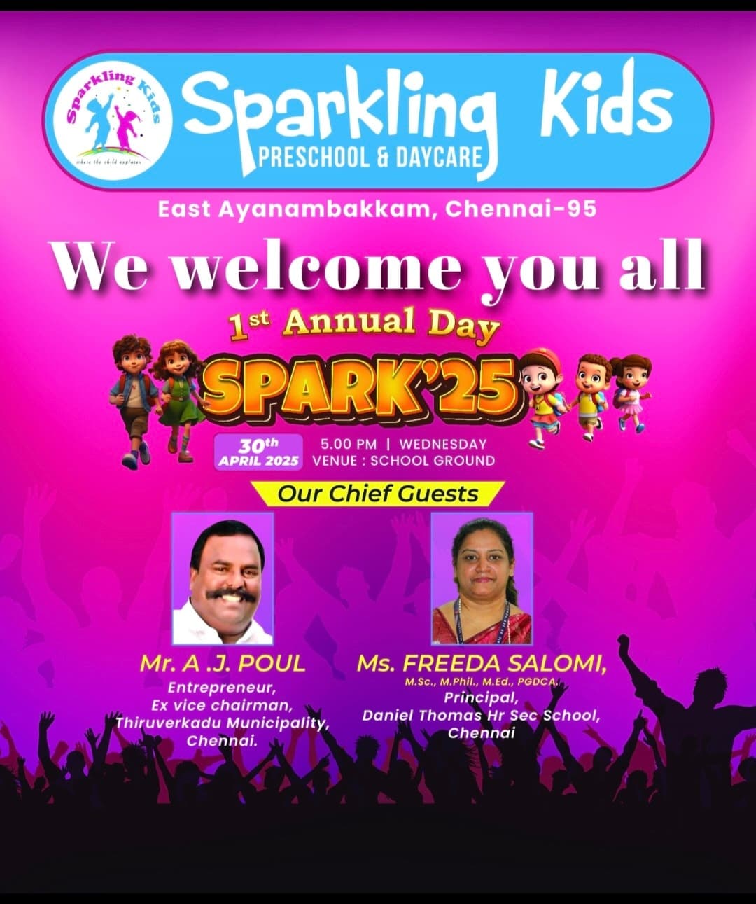 Sparkling Kids Pre School & Day Care is a small, community-based preschool in Ayanambakkam.