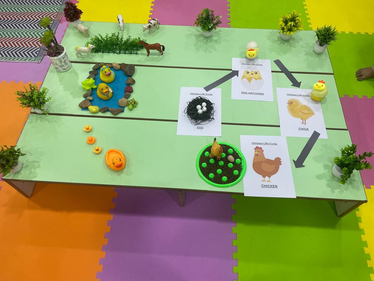 Bright, colourful classrooms and engaging activity corners create a cheerful environment.